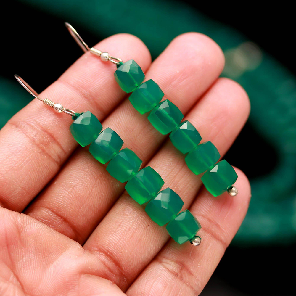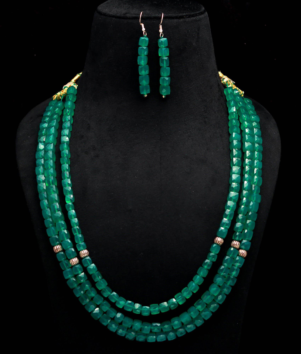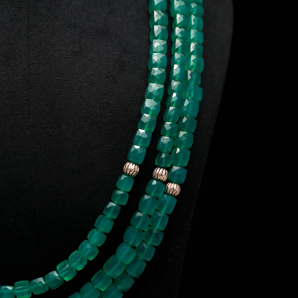 Beaded Green onyx faceted box set
