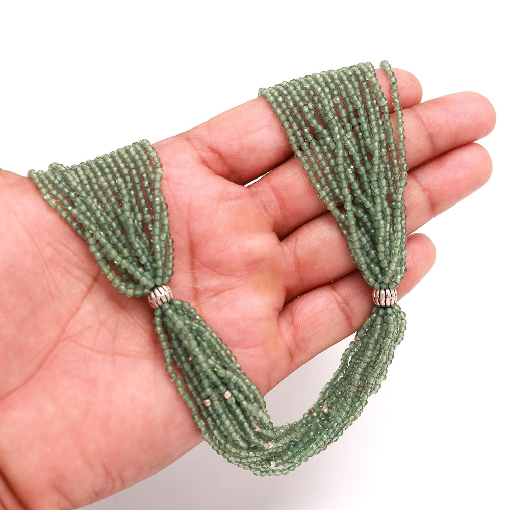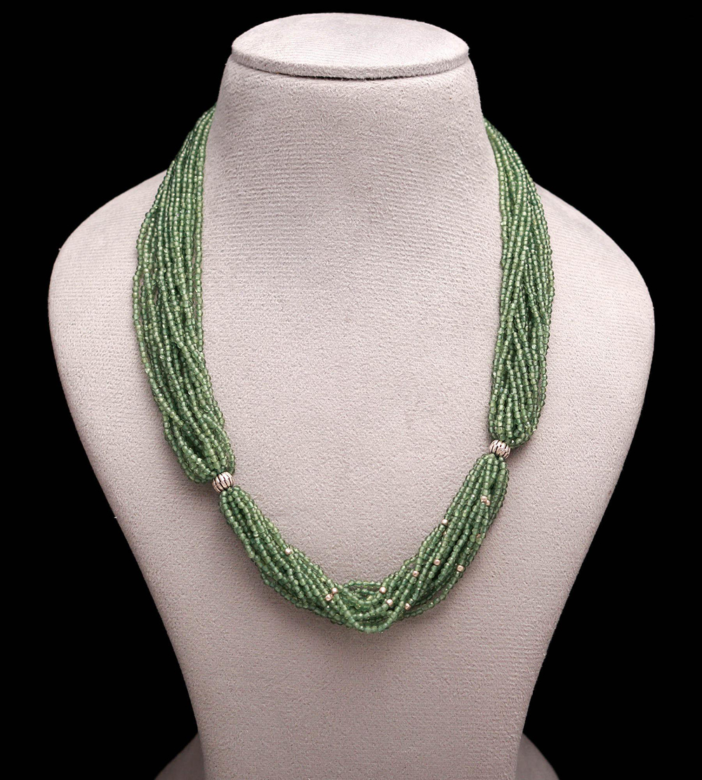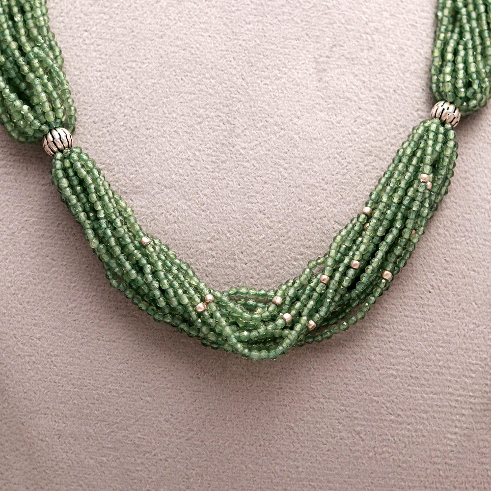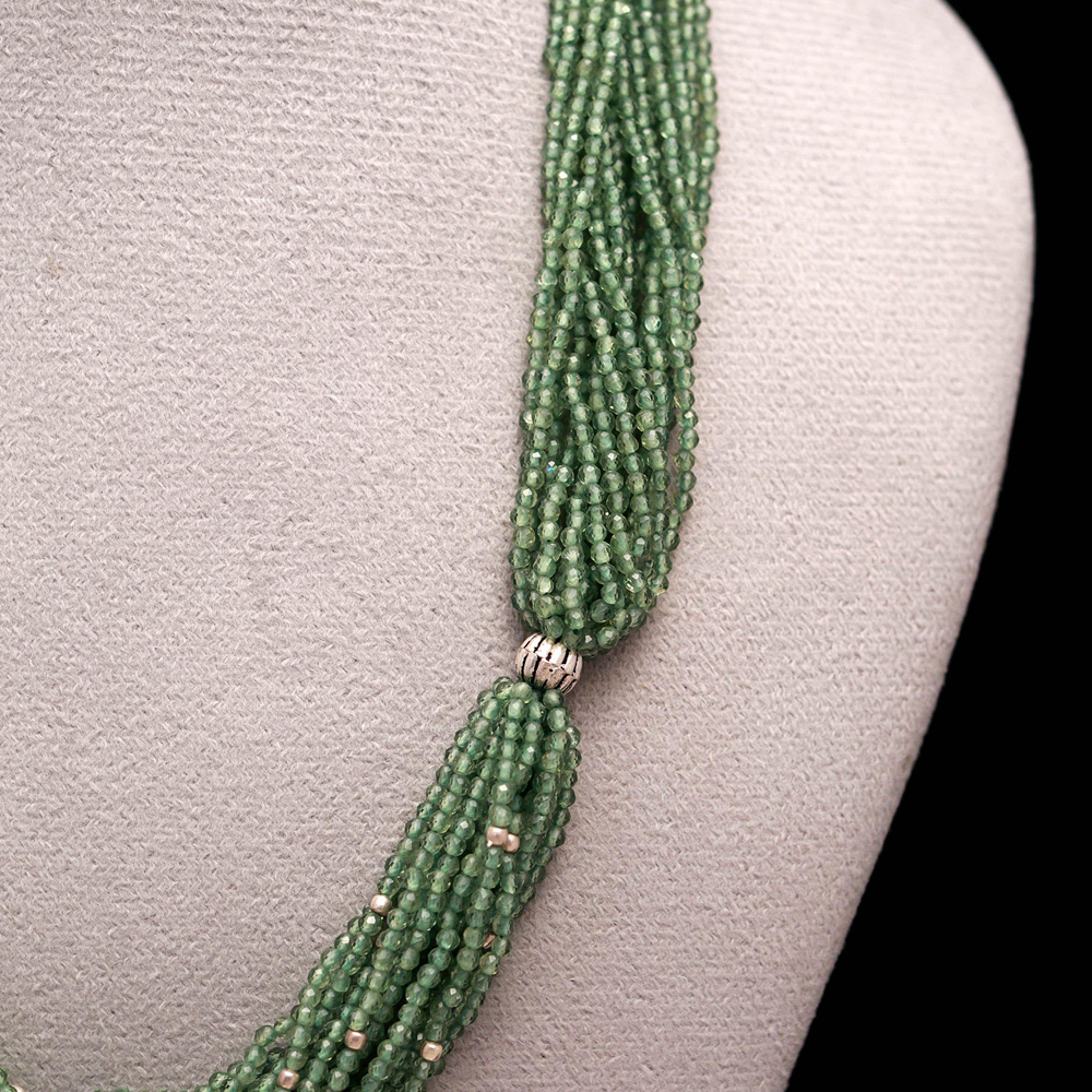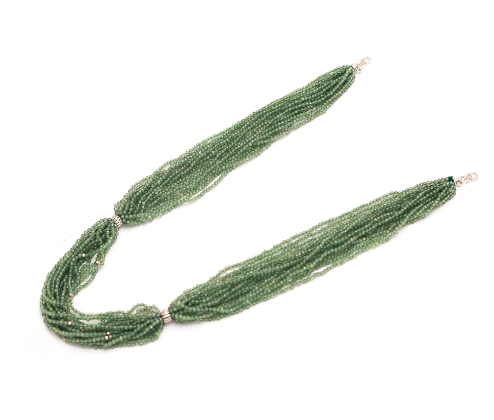 Chinnies cut beads with green amethyst colour with silver findings 925 necklace