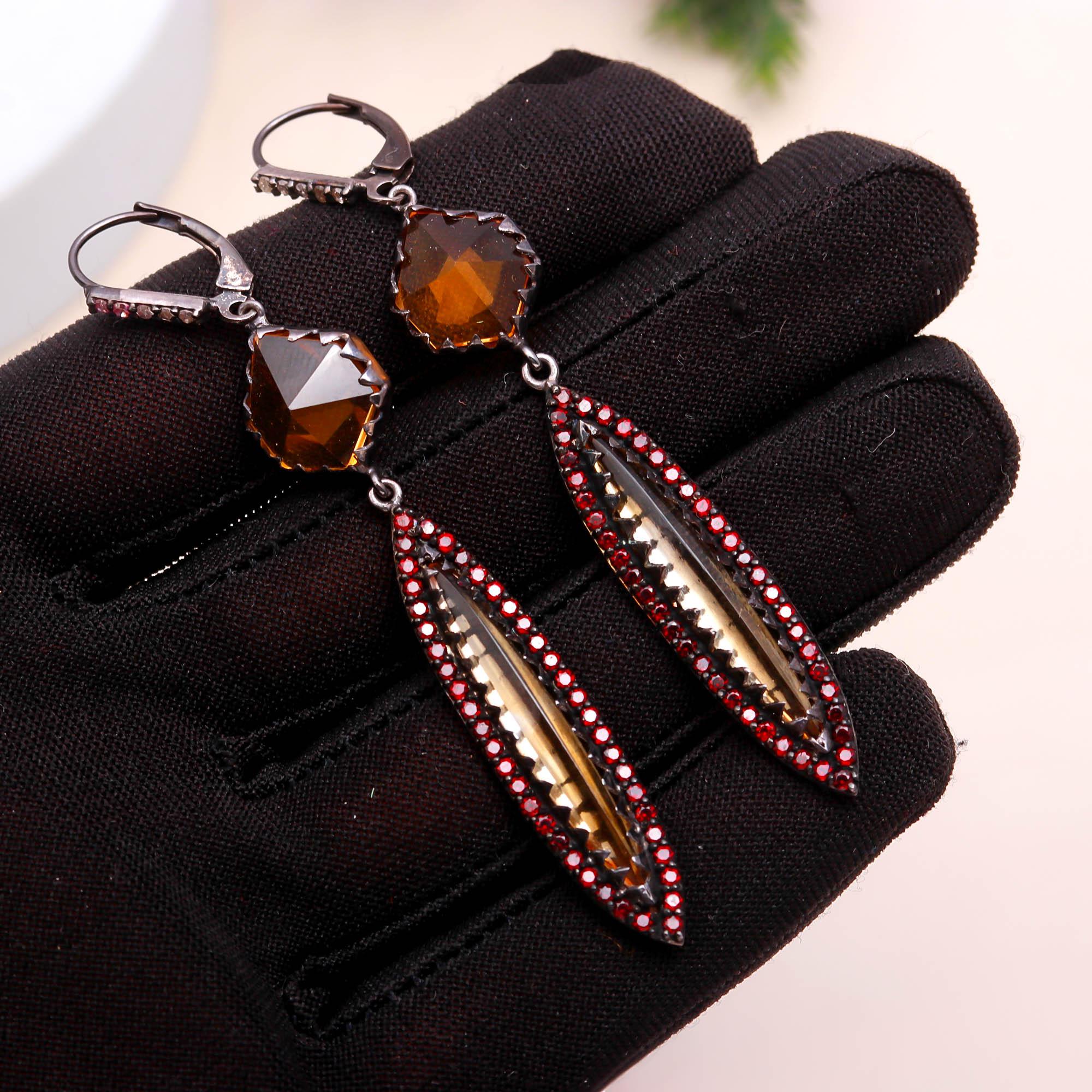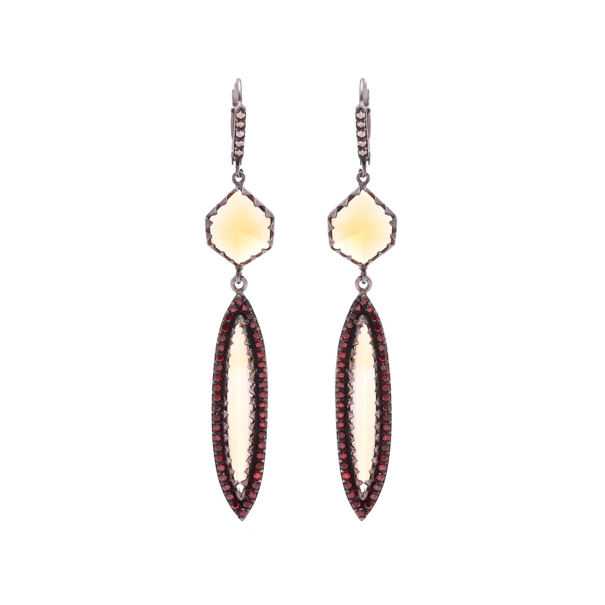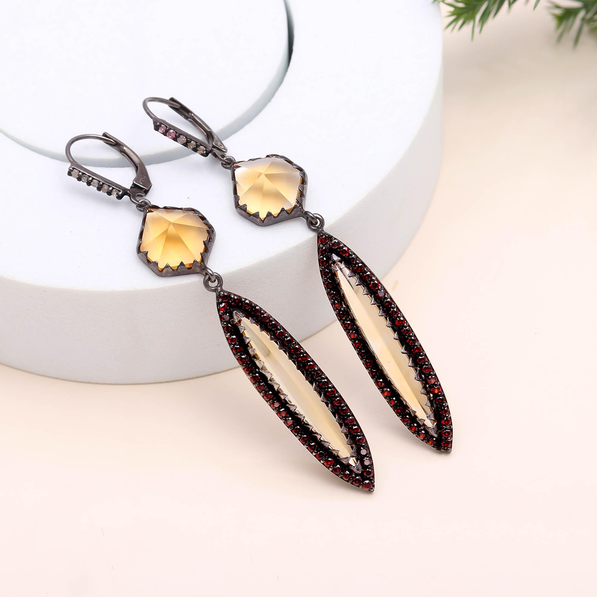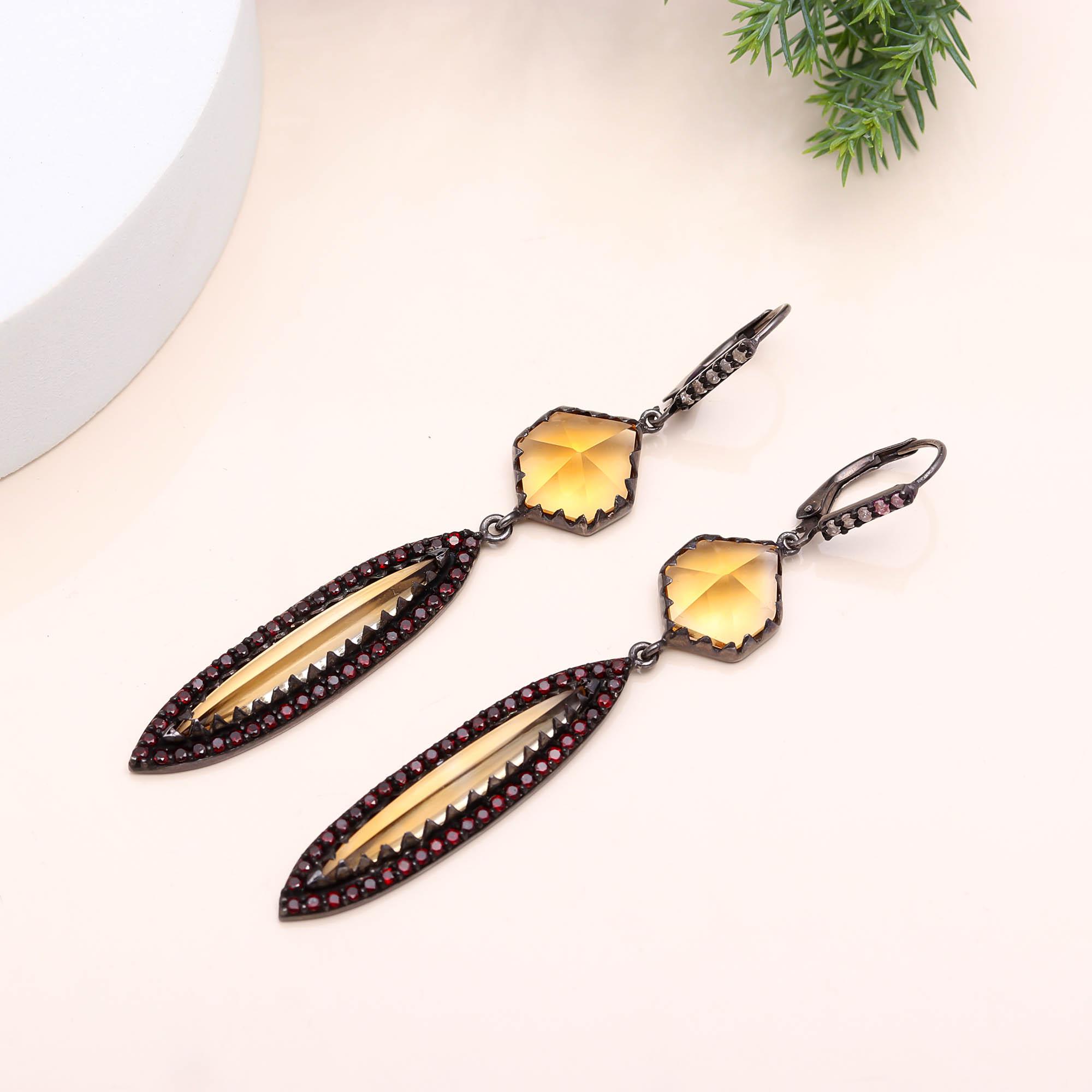 Citrine with Rubystone EarringTear Drop Gemstone Earring