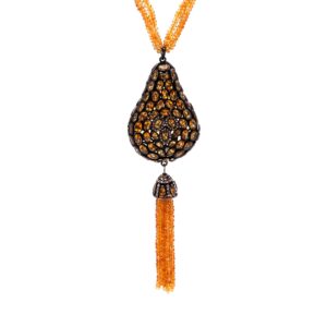 Corolean Pink-Sapphire Stone Original Crafted Diamond-Polki Oval Shape Pendant