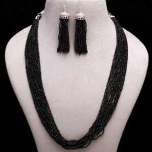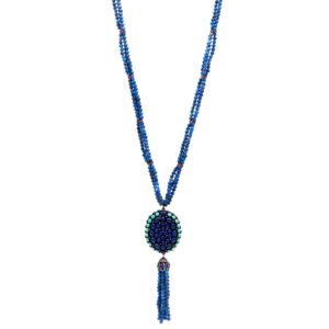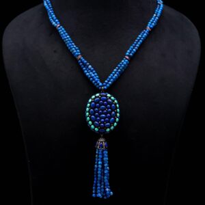 Dark-Blue Gemstone Beaded Chain-Pendant Set