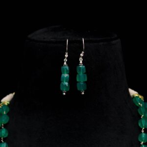 Chrysoprase faceted round baati with silver 92.5 findings necklace set