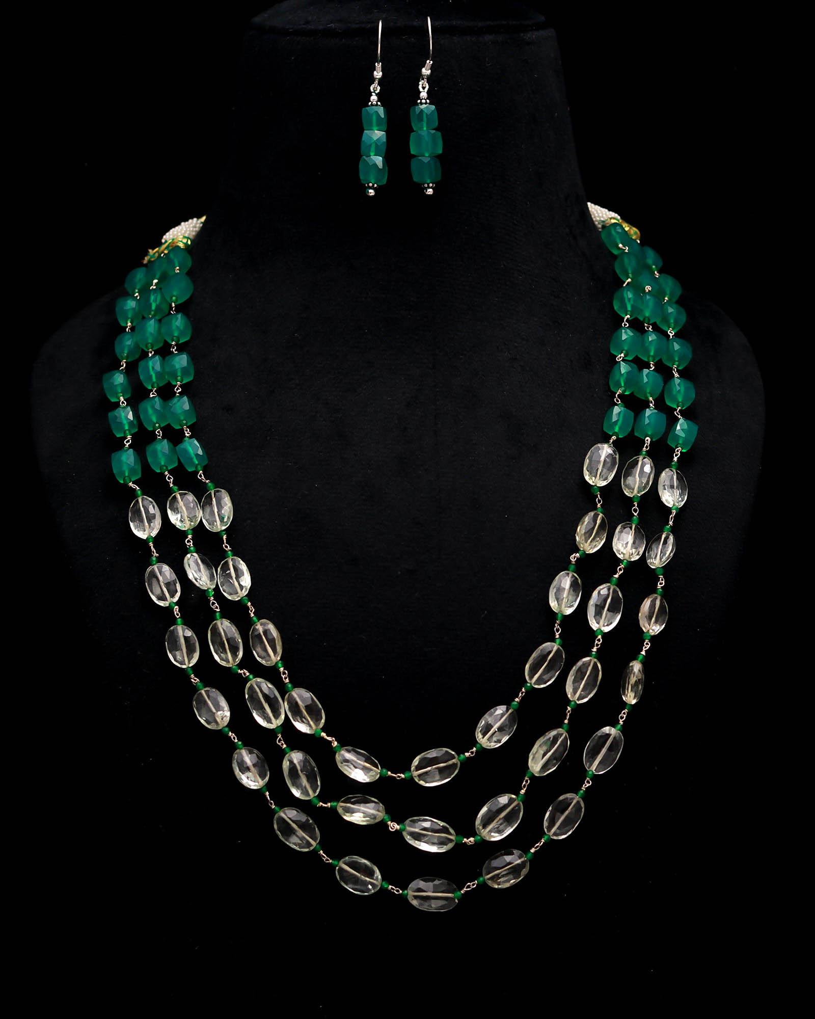 Amethyst-Green Onyx Gemstone Necklace Set