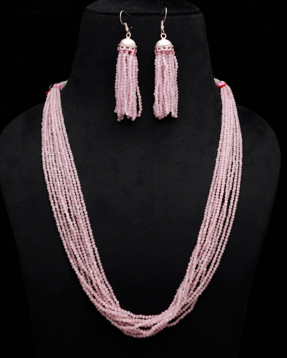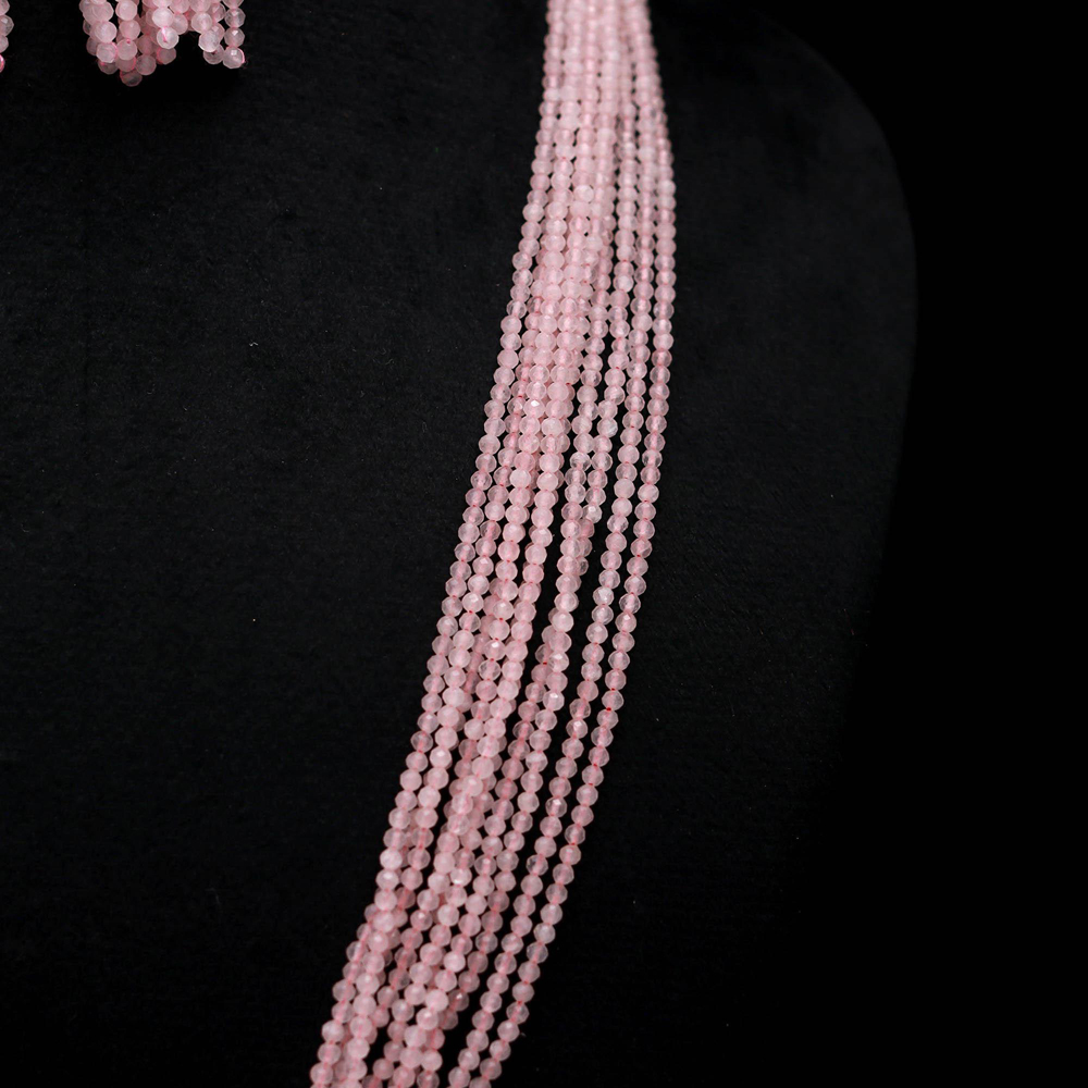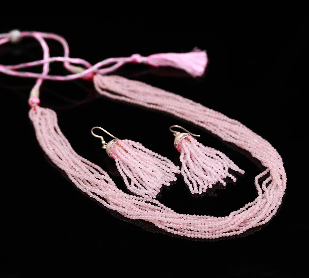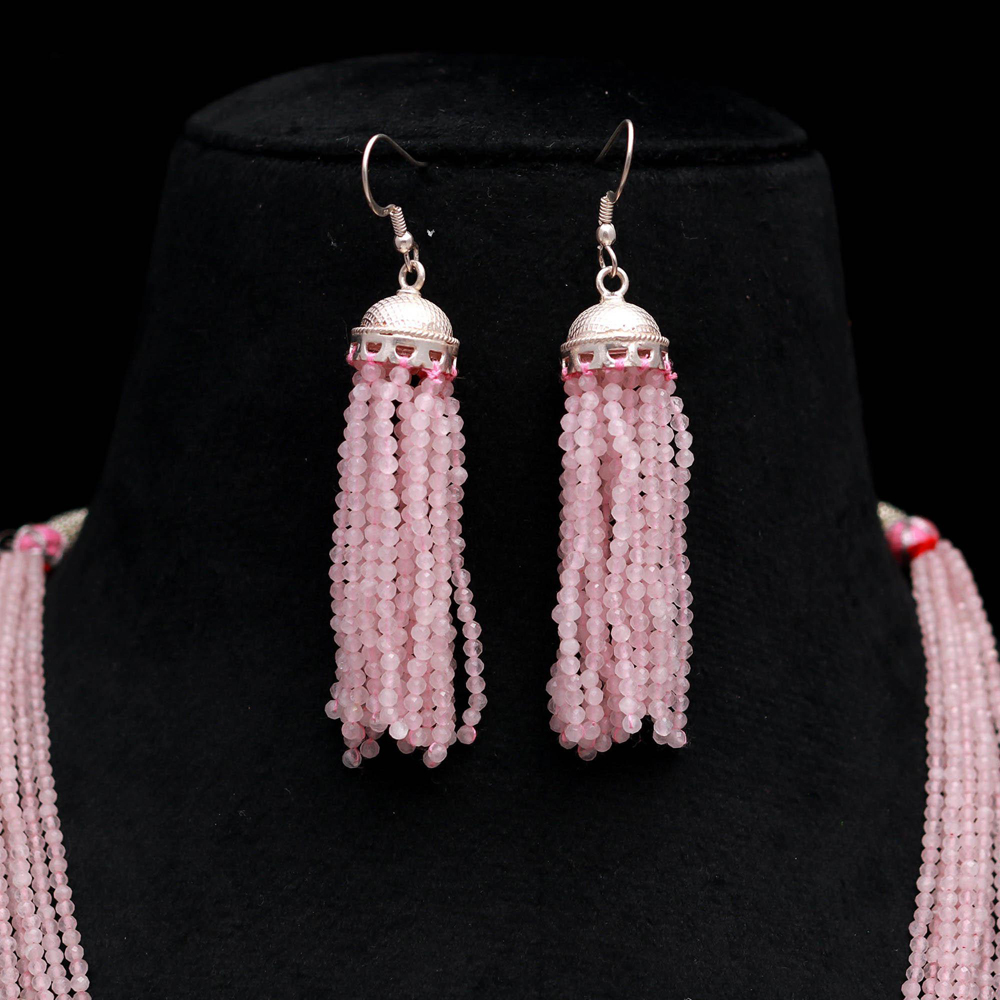 Natural Gemstone Rose Quartz Beads Necklace Set