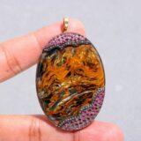 Be the first to review “Corolean Pink-Sapphire Stone Original Crafted Diamond-Polki Oval Shape Pendant”