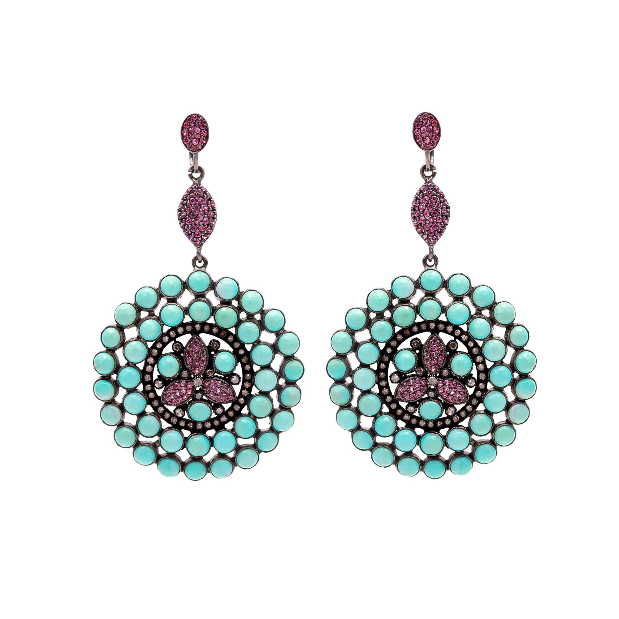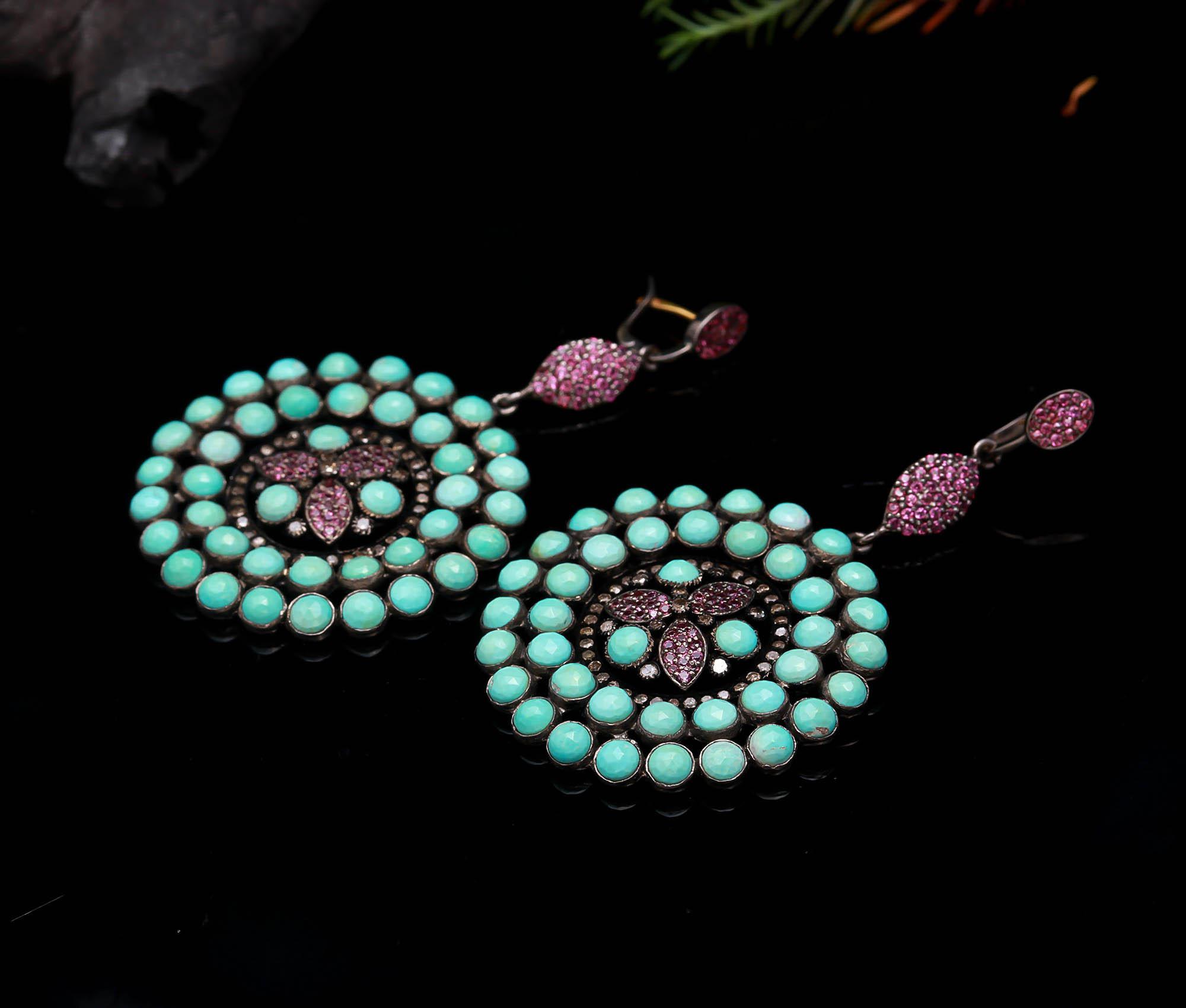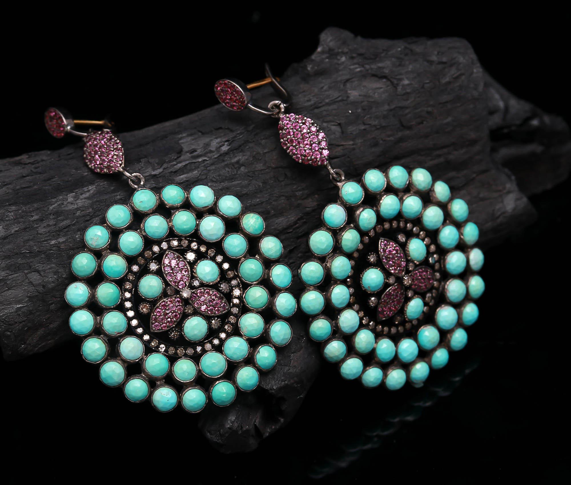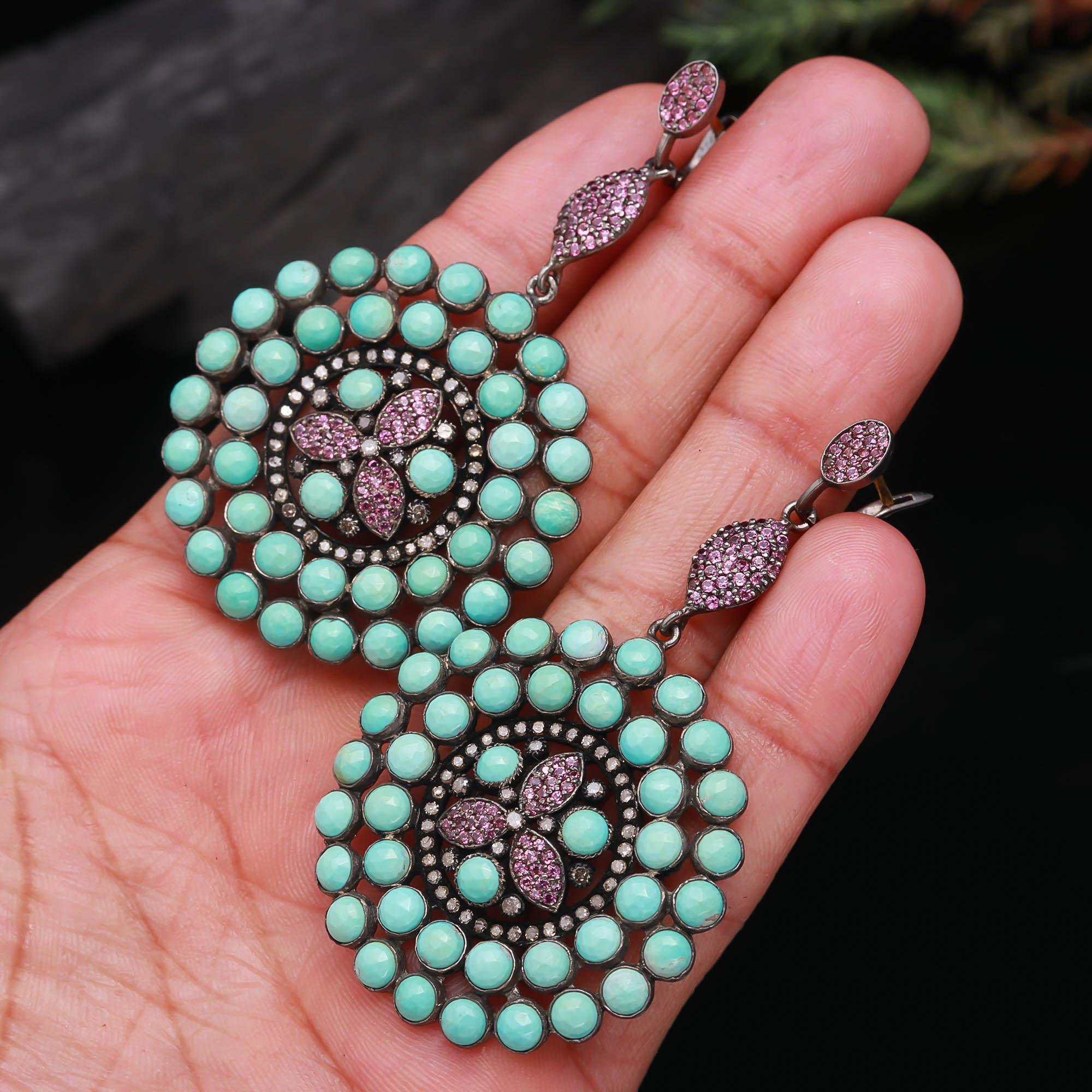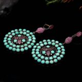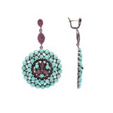 100% Natural Gemstone Ruby-Turquoise Jhumka round shape Earing Diamond-Studded